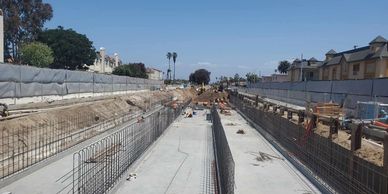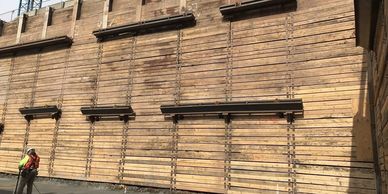 soldier pile wall using I beam sections and Timbered Wood for the City of Thousand Oaks California